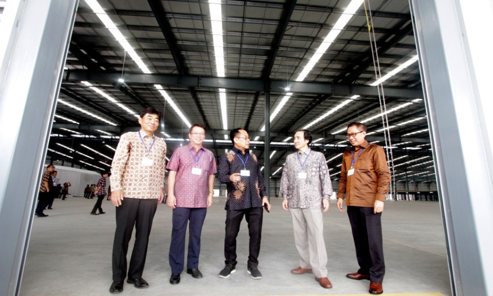 INDUSTRY co.id - Vice President Director PT Surya Semesta Internusa Tbk (SSIA) Eddy P. Wikanta (tengah), President Director PT SLP Internusa Karawang Suhartono Widjojo (kedua kanan) Director & CEO MBK Real Estate Asia Pte. Ltd Eiichi Tanabe (kiri), President Director PT Mitsui Indonesia Uno Motoaki (kedua kiri), President of Frasers Property (Thailand) Public Company Limited Sopon Racharaksa (kanan) berfoto bersama seusai melakukan opening ceremony Block C yang berlokasi di Suryacipta Technopark di Kawasan Industri Suryacipta, Karawang Timur, Jawa Barat, Rabu (04/12/2019). SLP Blok C seluas 51,330 M2 terdiri 1 (satu) Build To Suit dan 5 (lima) unit Retail Warehouse dan dibangun di areal seluas 53,744 M2 yang dilengkapi dengan fasilitas pergudangan modern pertama di Indonesia dan berkualitas standar internasional, serta menawarkan fasilitas pergudangan modern dan ready built factory for rent.